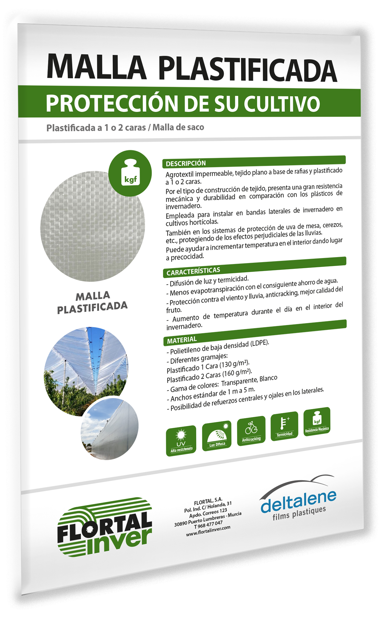 Por el tipo de construcción de tejido, presenta una gran resistencia mecánica y durabilidad en comparación con los plásticos de invernadero.